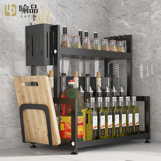 喻品 厨房置物架落地调料架收纳台面储物架刀架桌面调味架厨具用品多功能架子 ZW36双层40cm