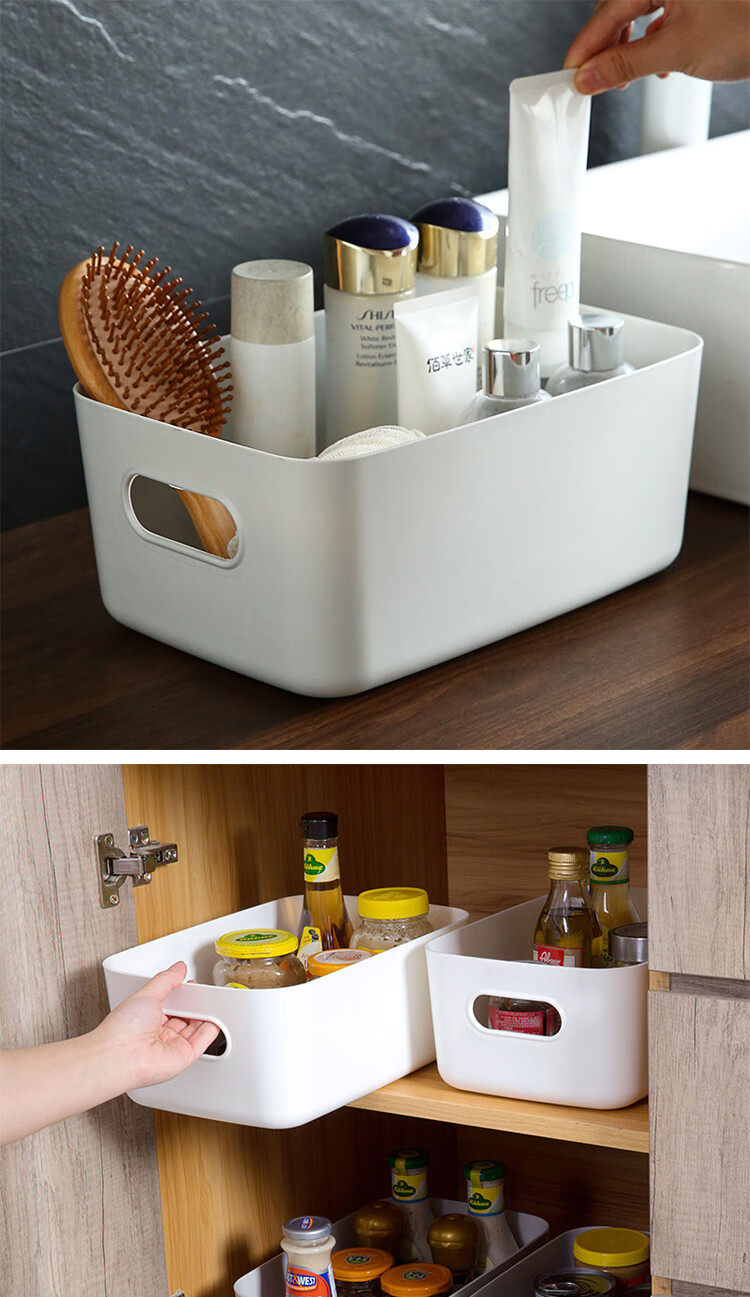 本所 日式桌面收纳盒办公桌整理箱储物箱家用收纳筐浴室用品盒子内衣收纳箱收纳篮化妆品首饰储物盒药盒 中号白色1只(25*16.5*10cm)