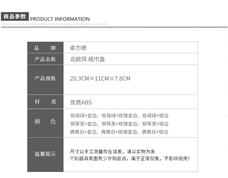 索力德纸巾盒抽纸盒家用客厅餐厅茶几简约北欧风收纳创意家居用品桌面抽纸盒家用纸巾盒轻奢ins创意简约 祖母绿-金边