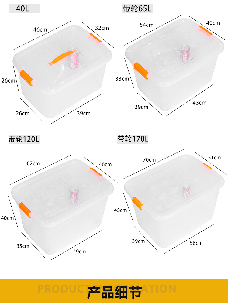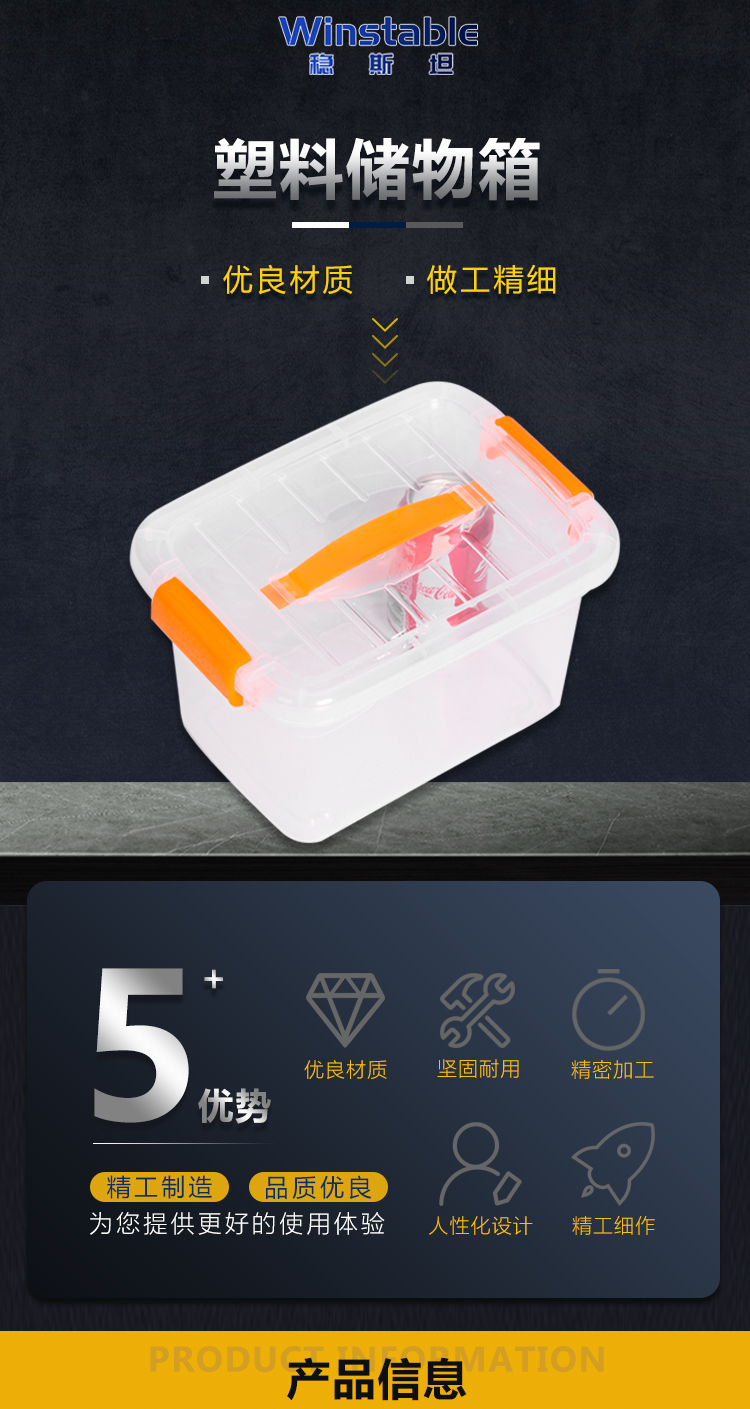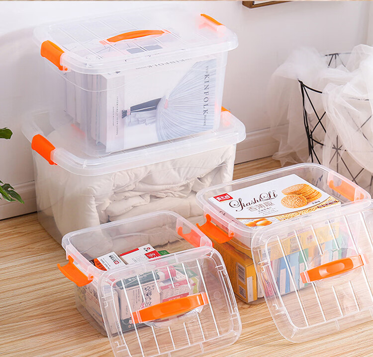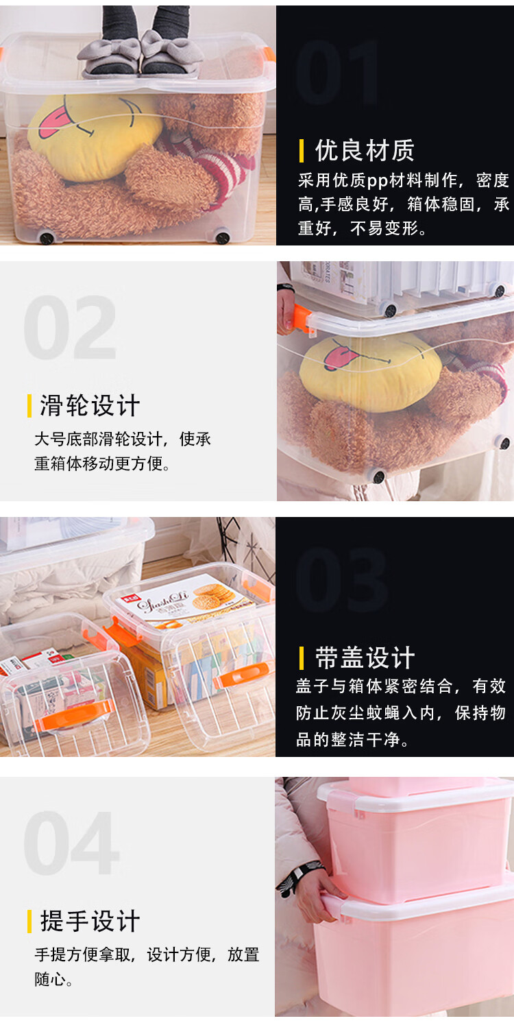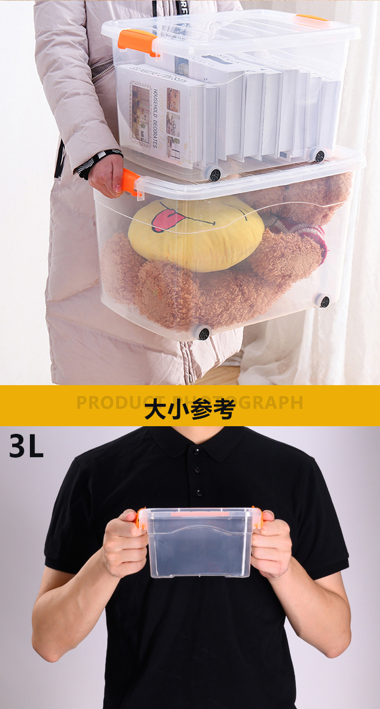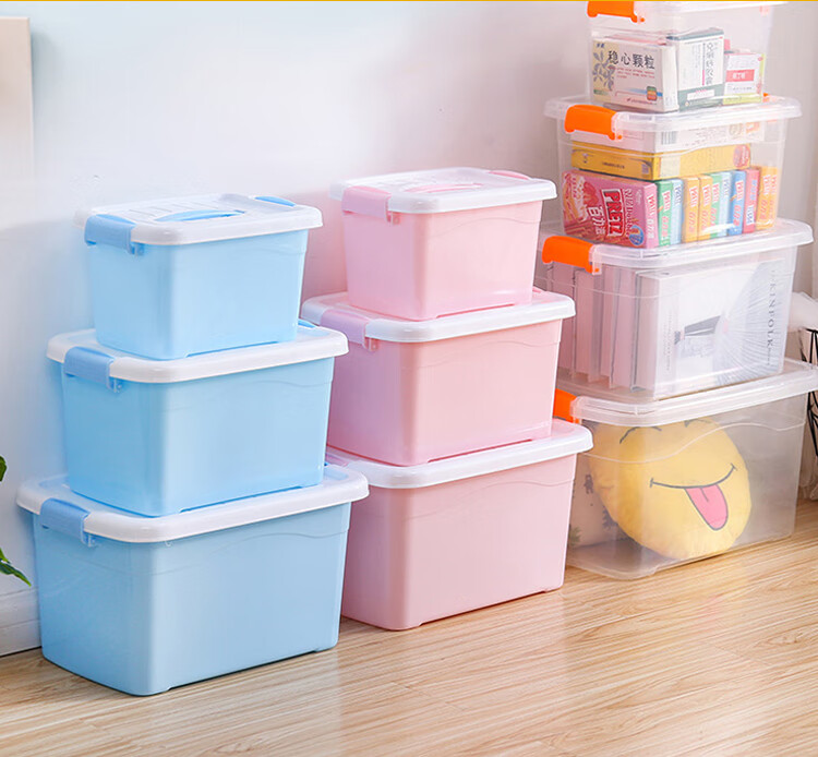 稳斯坦 W305 彩色带提手收纳箱 周转箱 带滑轮储物箱杂物工具带盖整理箱 蓝色3L