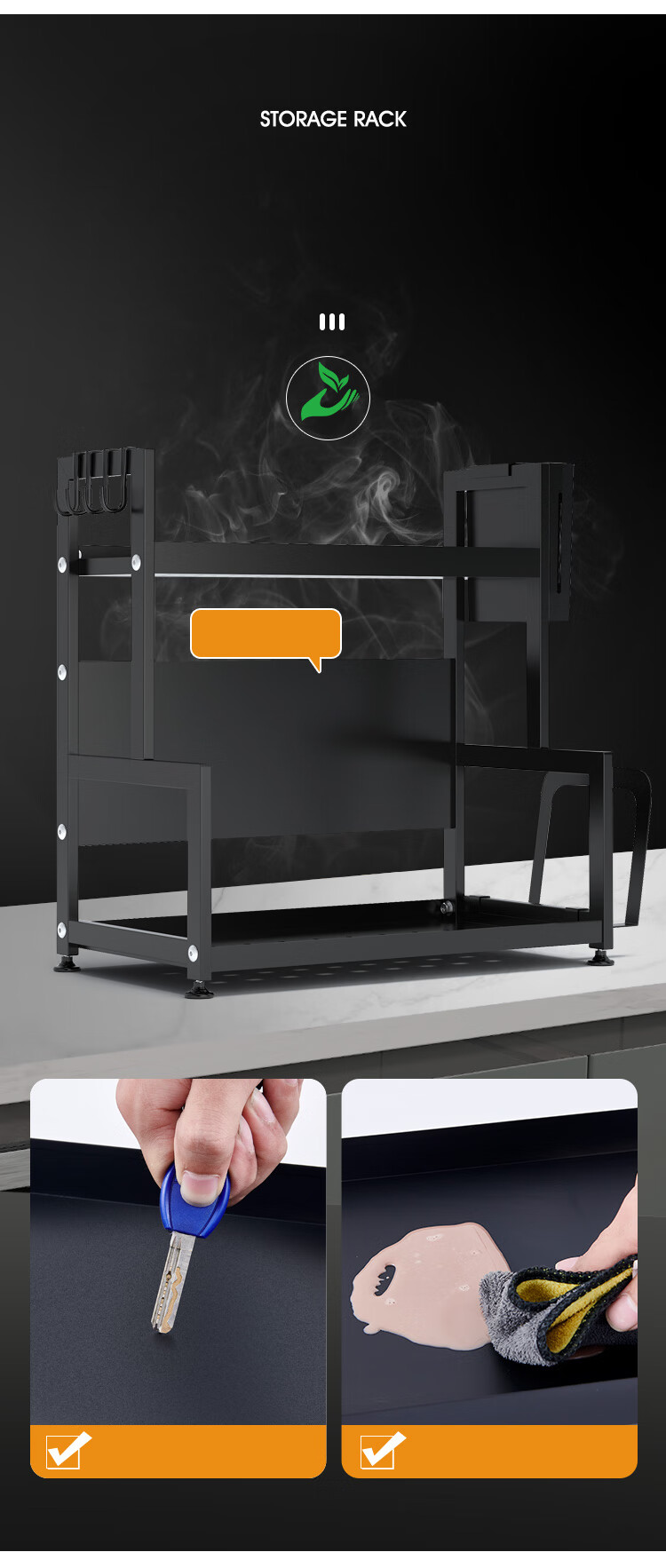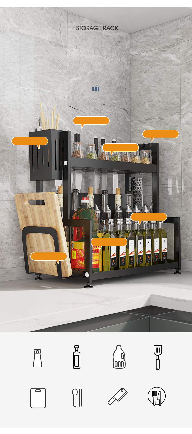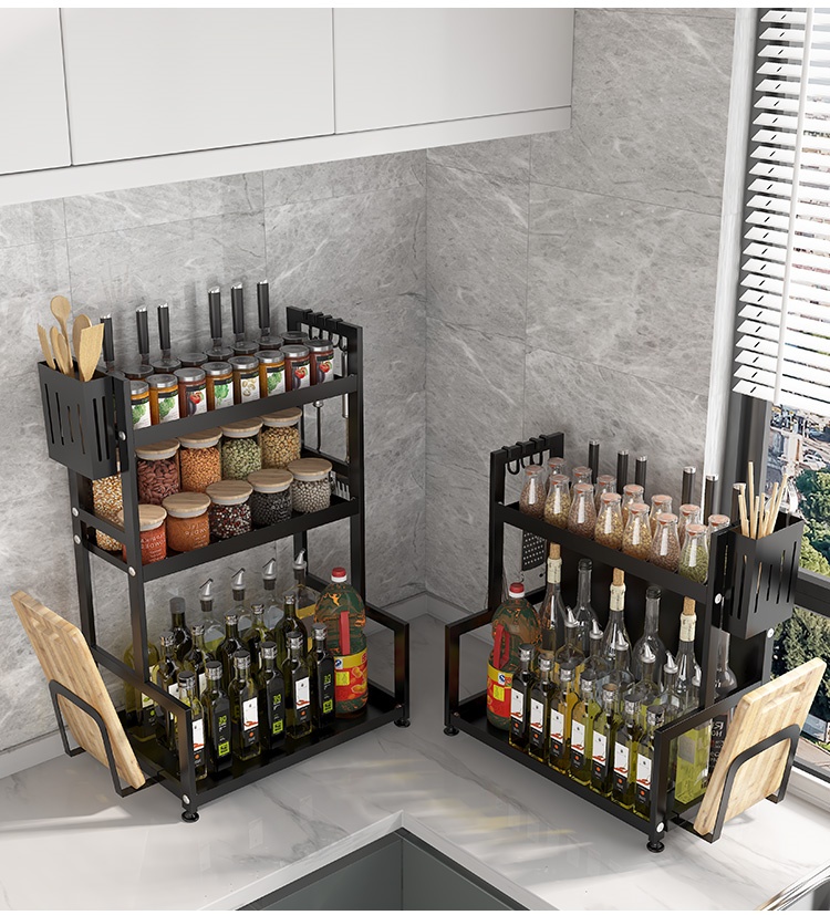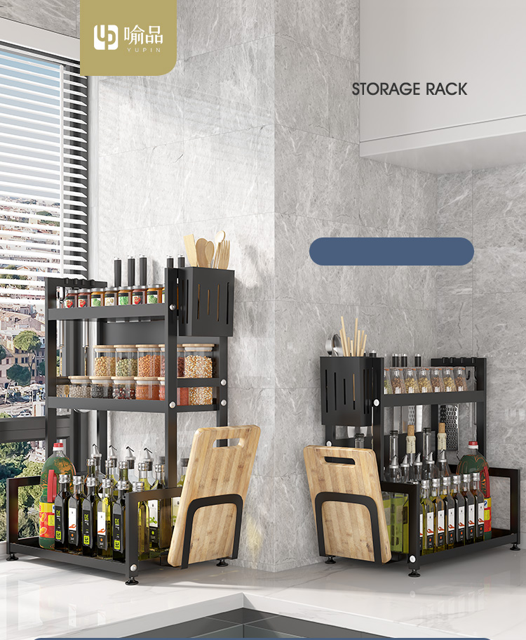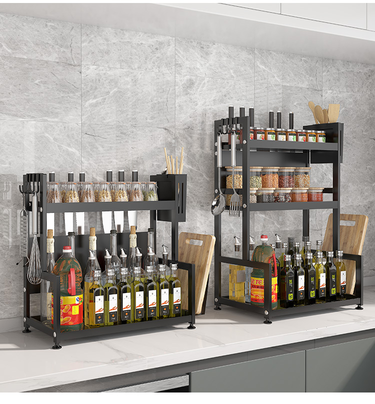喻品 厨房置物架落地调料架收纳台面储物架刀架桌面调味架厨具用品多功能架子 ZW36双层40cm