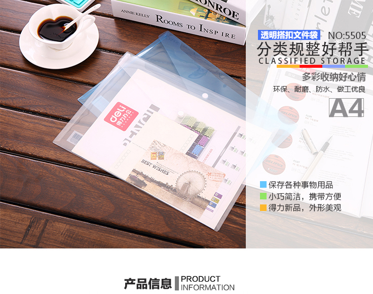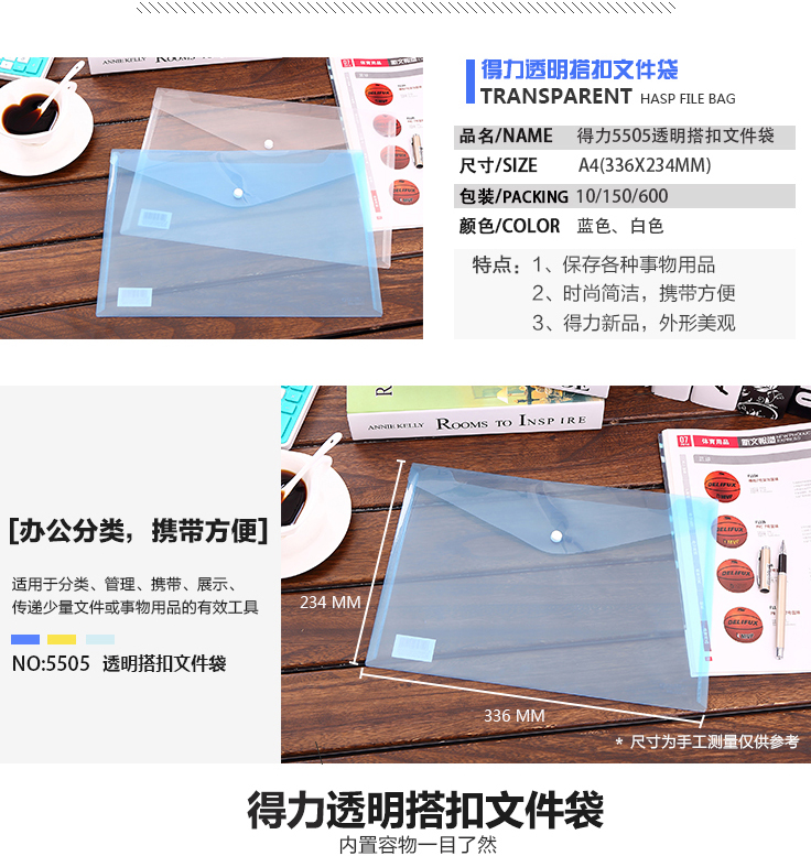 | 商品名称: | 5505文件袋 | 颜色: | 随机 | 品牌: | 得力 |