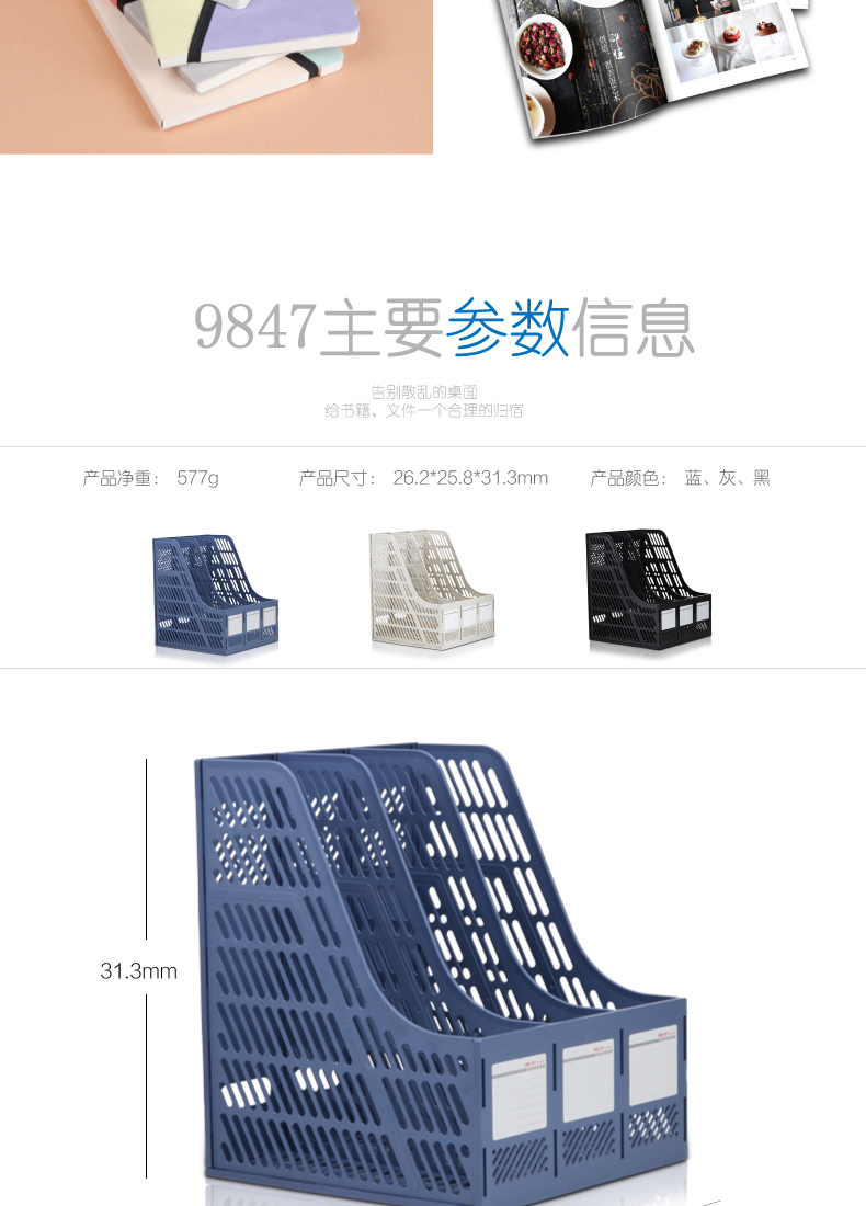 | 商品名称: | 9847文件框 | 颜 色: | 蓝、黑 | 品 牌: | 得力 |
