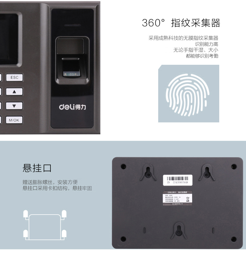 得力2250指纹考勤机