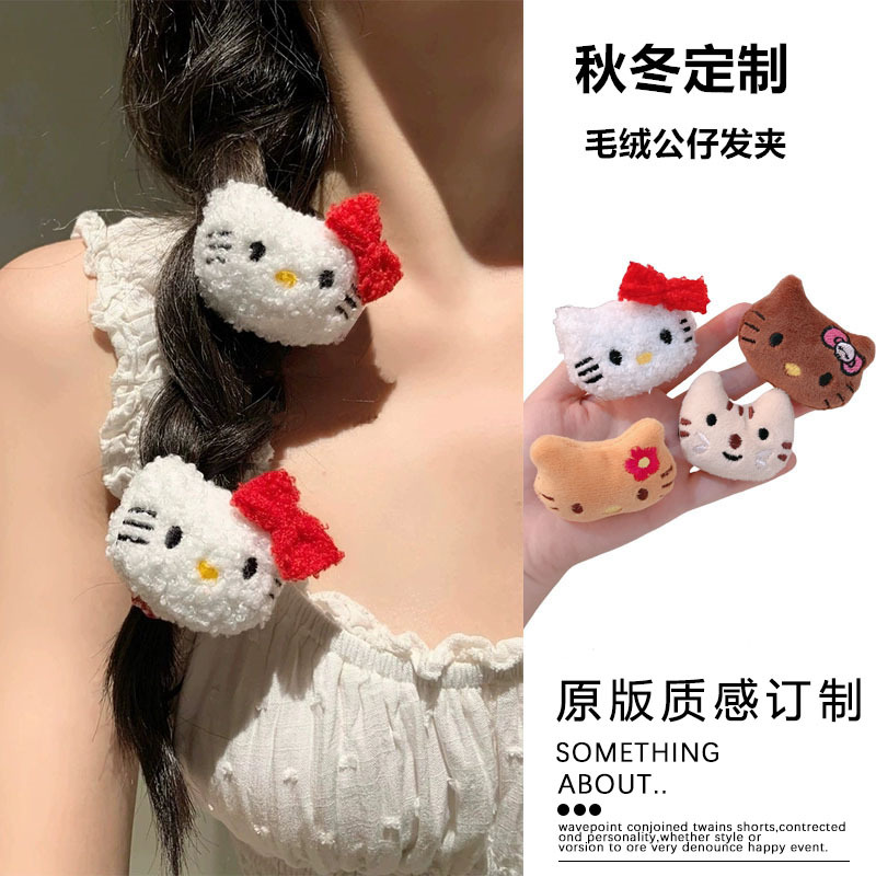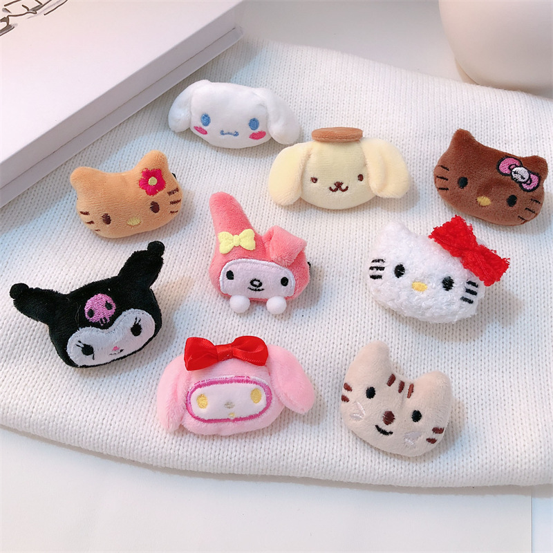 可爱卡通立体毛绒发夹秋冬少女碎发刘海夹三丽鸥毛绒公仔发卡发饰